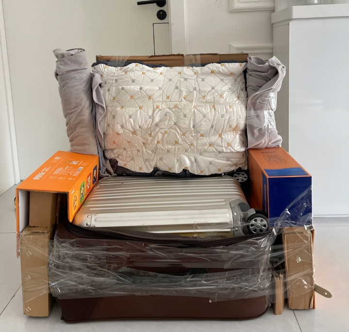 家里闲置,或者没地方放的行李箱,一定要在里面装满衣服,再把两个行李箱摞在一起,两边可以固定一些纸壳箱。
