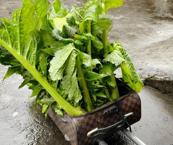 比如,把行李箱上面剪裁一下,平时下楼买菜也好、拿快递也好,都可以装进行李箱里面,平时直接拖着走就可以了,非常方便。